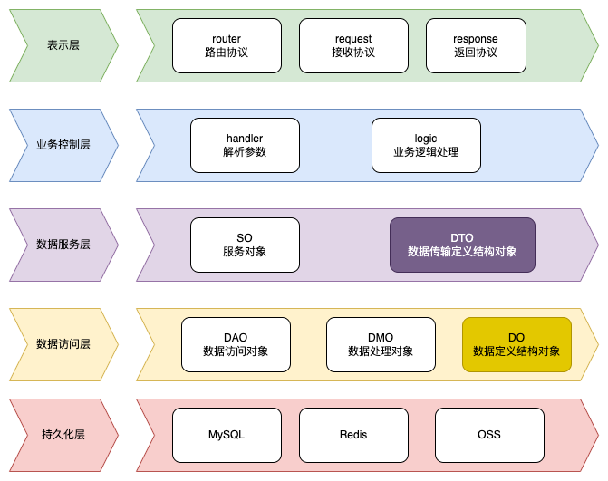 持久化层:对项目来说,底层数据存储位置或服务的架构演变,不应当导致整个项目的重构。例如原来的mysql改成了api,或原来使用mysql改为了redis。